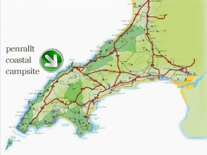 Turn right immediately at the end of the bungalow sign posted to Penrallt Coastal Campsite.